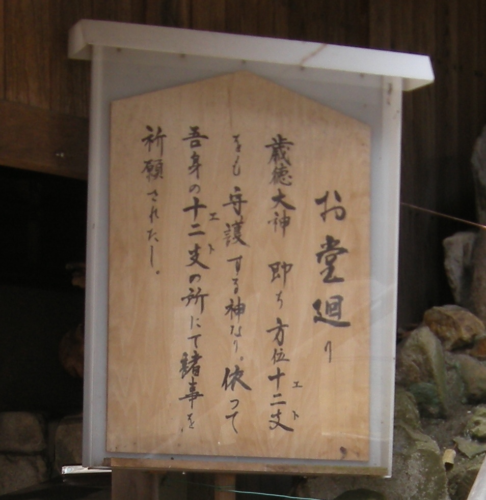 歳徳大神様は方位干支それぞれをも守護する神様です。 貴方も、貴方の干支の前に立って諸事を祈願してください。
