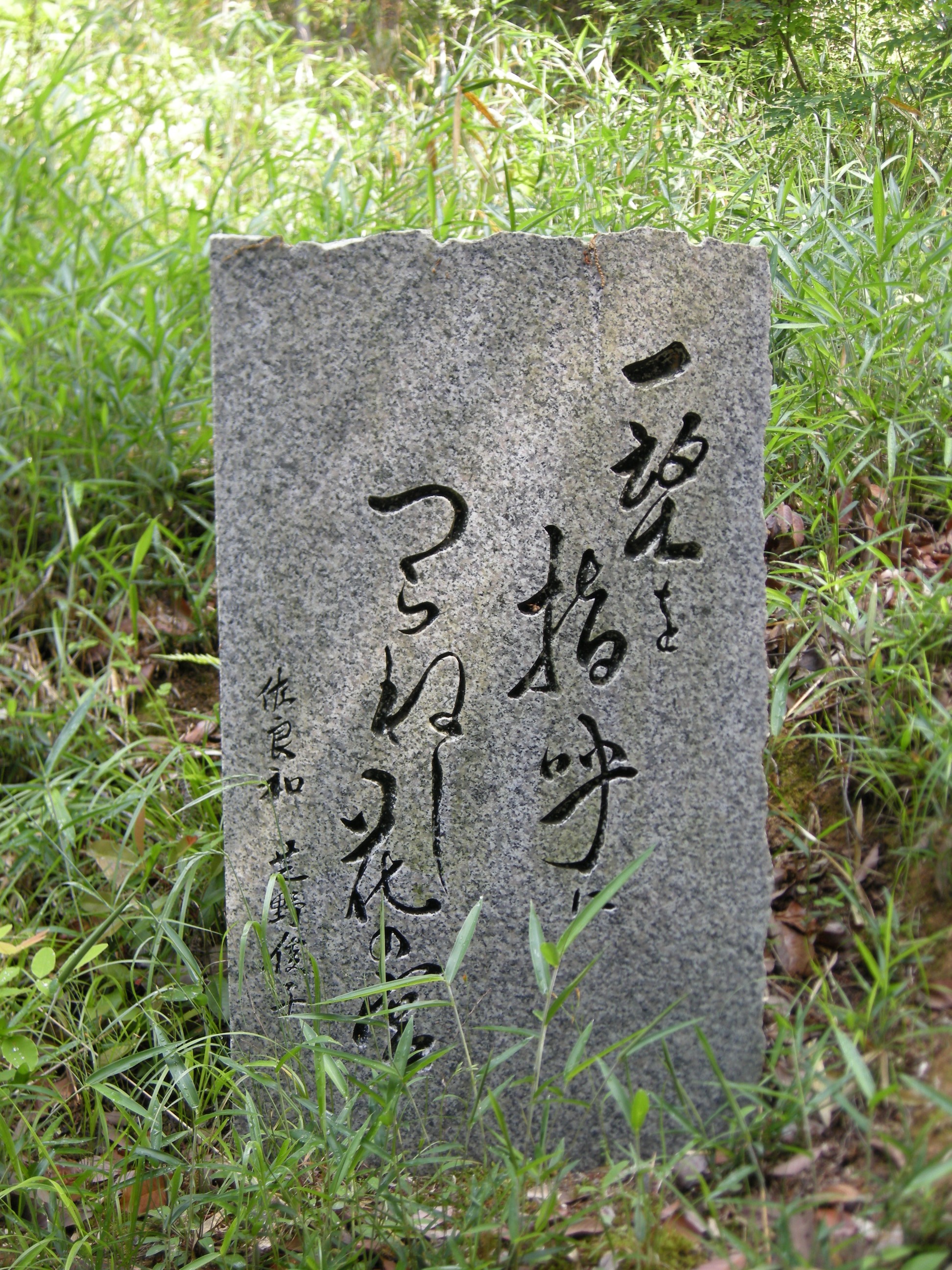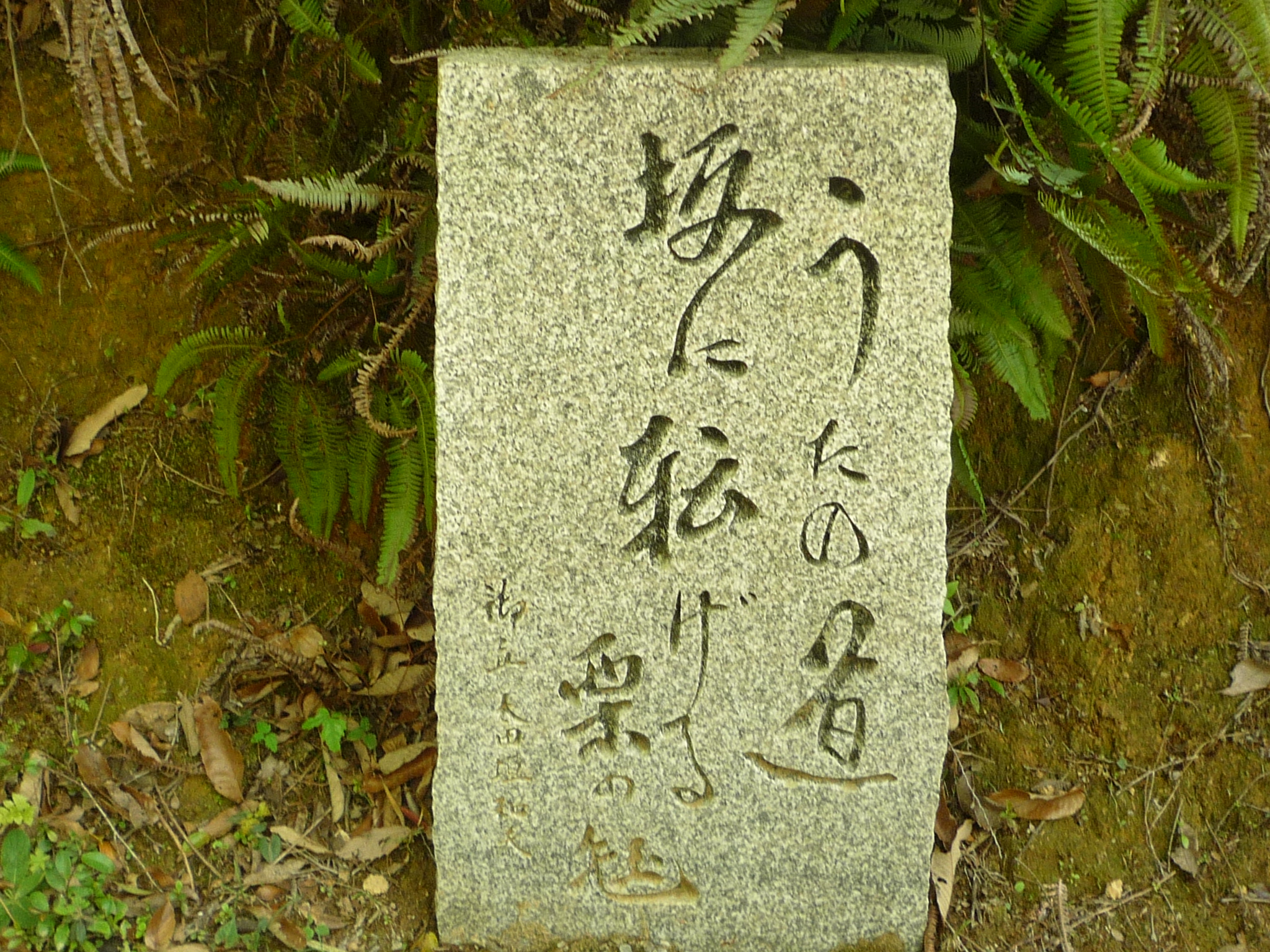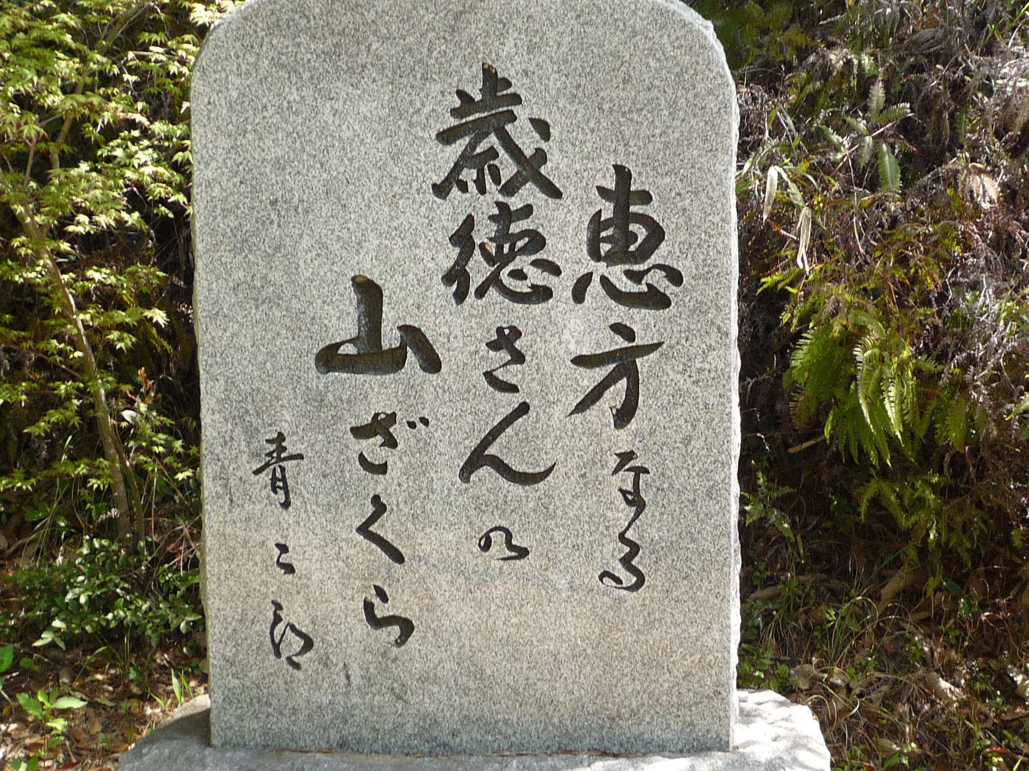 平成の始めに歳徳神社の奥の院が修復されるにあたり、資材の運搬の為に裏参道が造られました。自然豊かなこの裏参道の傍らに信者の歌碑、句碑を奉納しては如何かという話が持ち上がり、歳徳神社世話人、各種団体の賛同の元に一基、又一基と同好の詩心を寄贈願って数を増やしてきました。そして、本年四月、青門俳句会主宰の高木青二郎氏の句碑建立を機に句碑開きをして今に至っております。